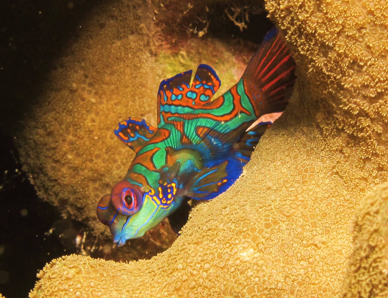 Um peixe-mandarin Synchiropus splendidus na Chandelier Cave, Palau. Crédito: Brian Smith